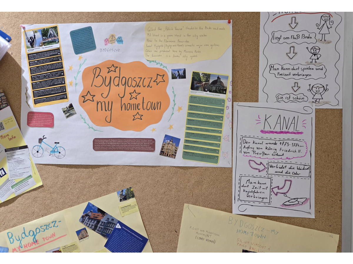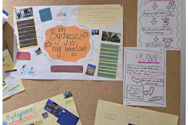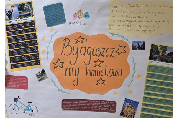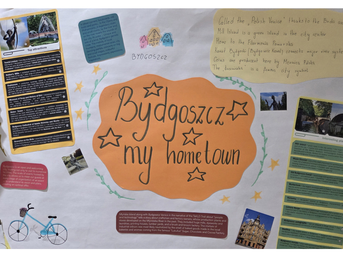 Z okazji 680 urodzin Bydgoszczy uczniowie kl II b na lekcji wychowawczej wraz z Panią Anią Ciechanowską przygotowali angielsko-polski album o Bydgoszczy. Na lekcji języka niemieckiego uczniowie Pani Ludmiły Bożejewicz stworzyli inspirujące notatki wizualne dotyczące Bydgoszczy. Uczniowie Ib oraz chętni uczniowie klasy Ic pod kierunkiem Pani Beaty Szmani wzięli udział w projekcie „Bydgoszcz – my hometown”. Najpierw udali się do Biura Informacji Turystycznej, by poszerzyć swoją wiedzę o naszym mieście, a potem przygotowali plakaty, broszury i ulotki promujące Bydgoszcz. Praca zespołowa zintegrowała uczniów. Uczniowie wykazali się kreatywnością i zdolnościami interpersonalnymi. Wszystkie powstałe prace można obejrzeć na wystawie na parterze. Dziękujemy za udział, zaangażowanie i inwencję twórczą.