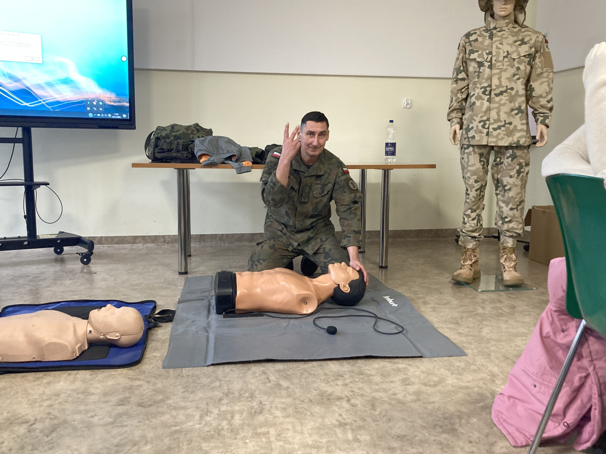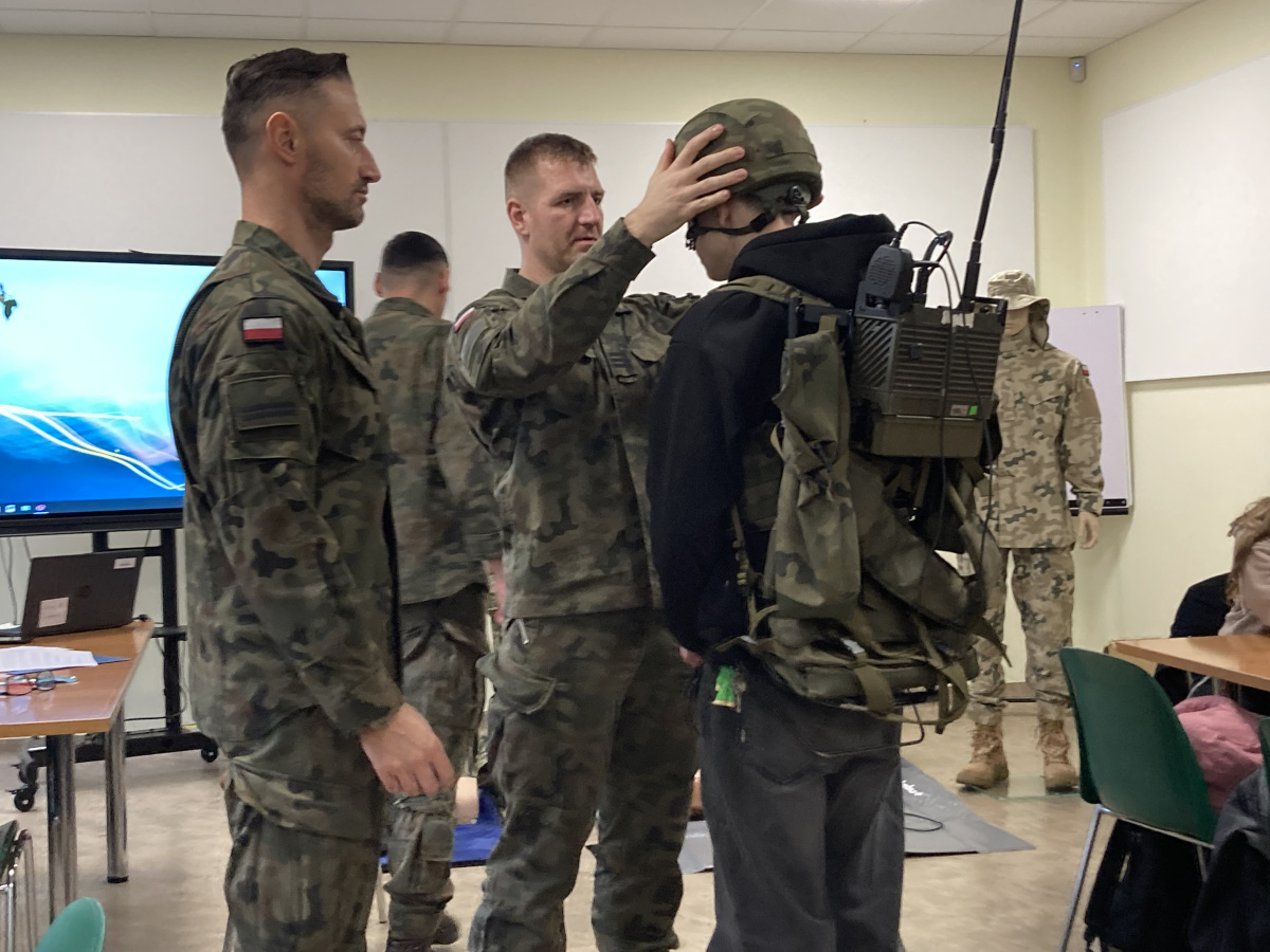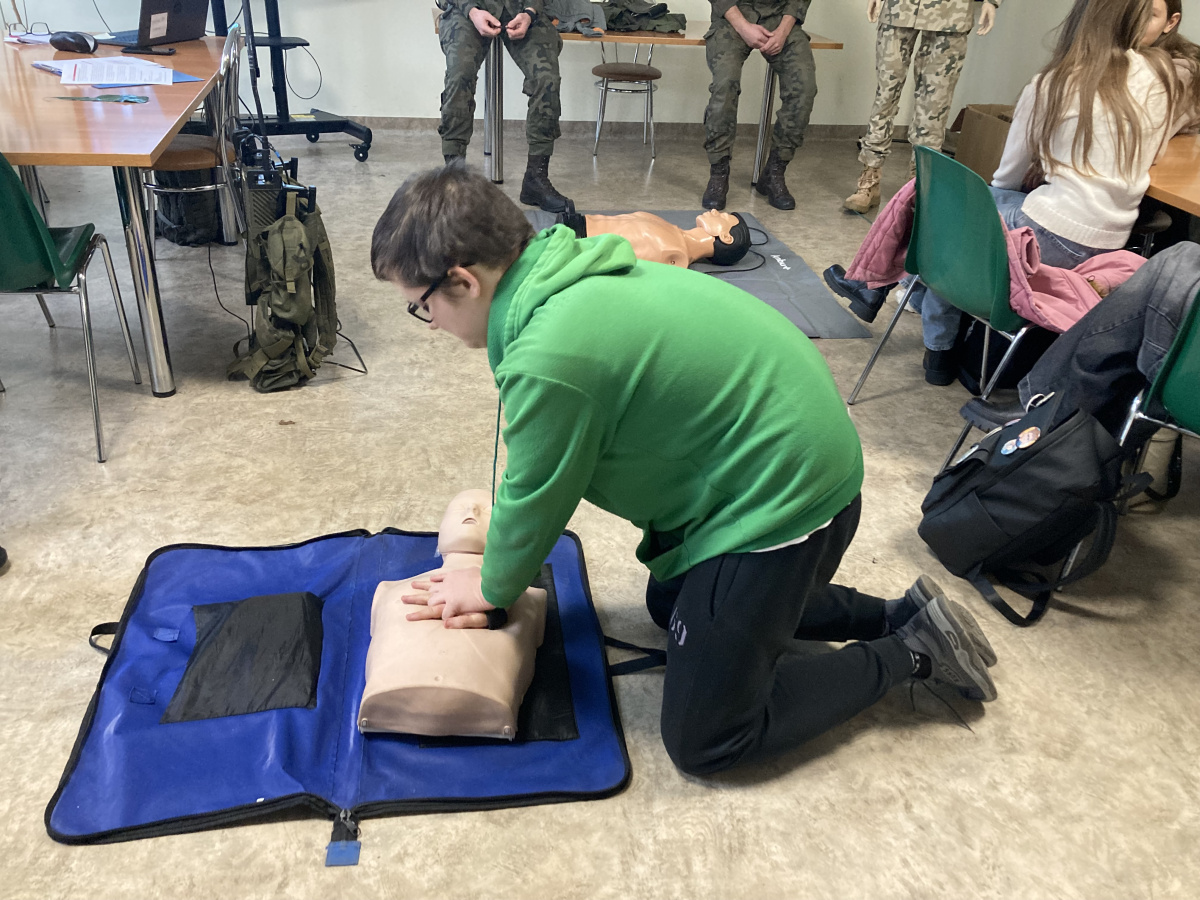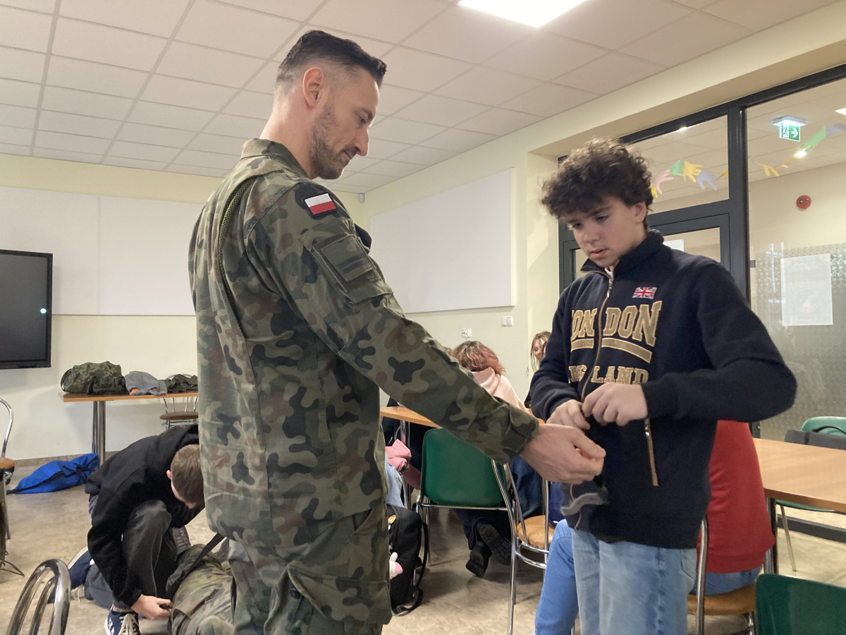 Podczas zajęć projektu „Edukacja z wojskiem” uczniowie zapoznali się m.in. z zasadami alarmowania, sposobami wzywania pomocy, podstawami ewakuacji i odnajdowania schronienia, technikami udzielania pierwszej pomocy, budowania odporności na zagrożenia informacyjne czy reagowania w sytuacji kontaktu z niezidentyfikowanymi obiektami. Wiemy jak wygląda plecak wojskowy i co powinien zawierać plecak ucieczkowy. Dowiedzieliśmy się też w jakich misjach brali udział żołnierze WP oraz ile takie misje trwają. Mieliśmy też okazję spotkania z weteranem misji poza granicami państwa, który udostępnił nam zbiór ciekawych zdjęć z kolekcji prywatnej.