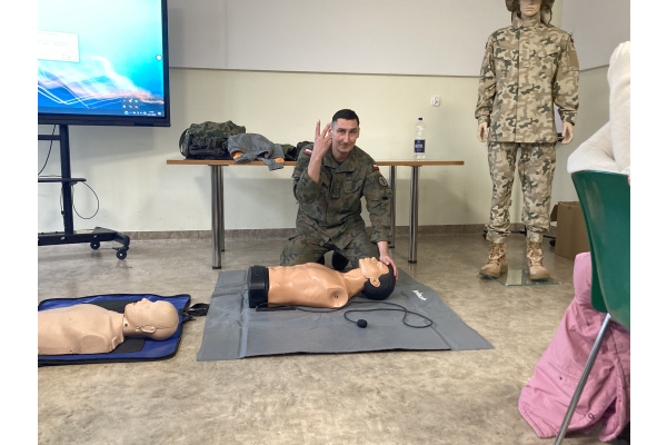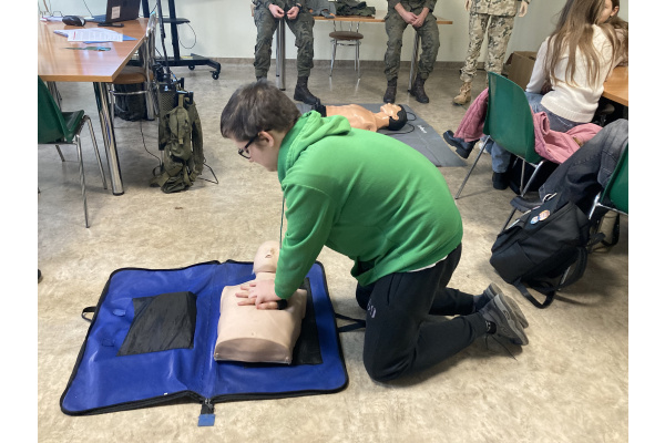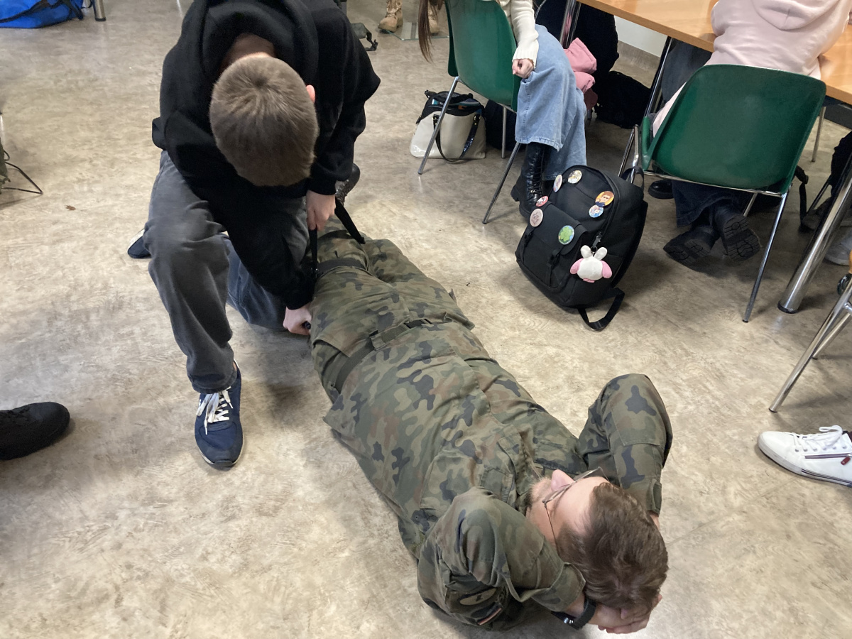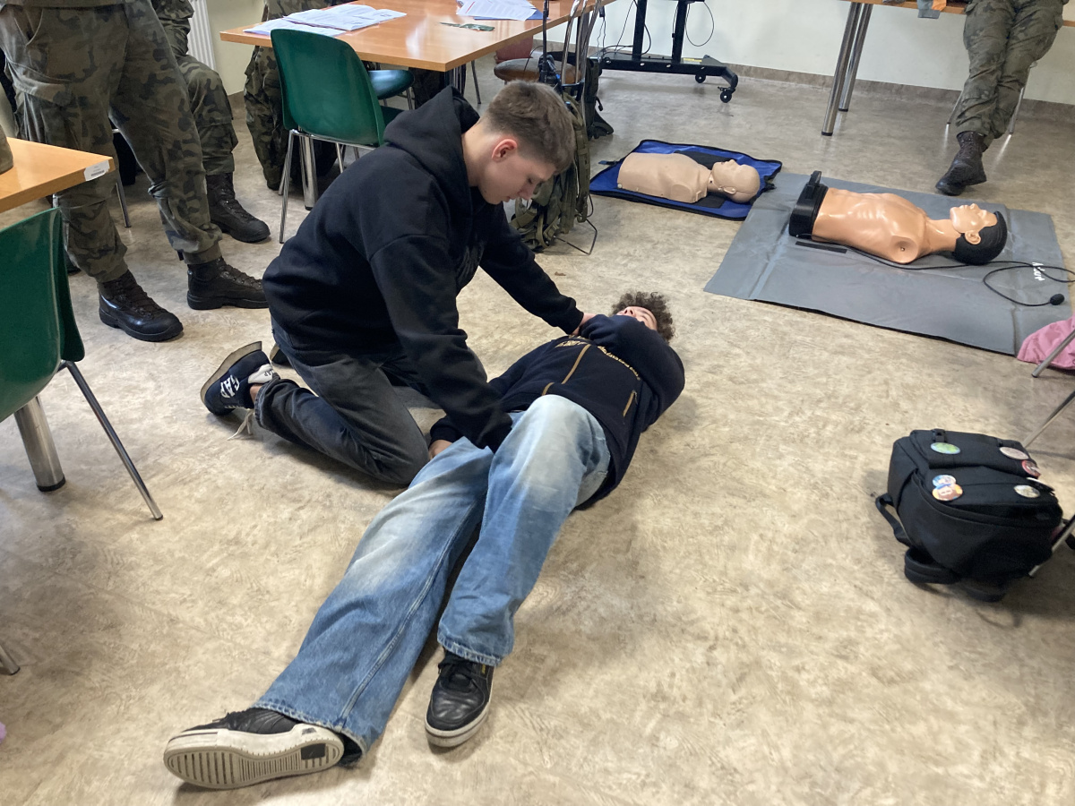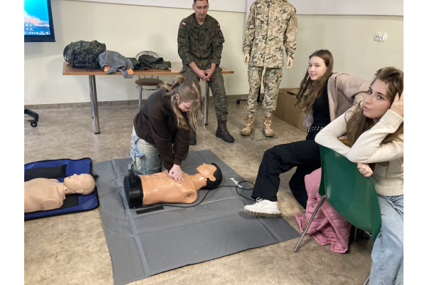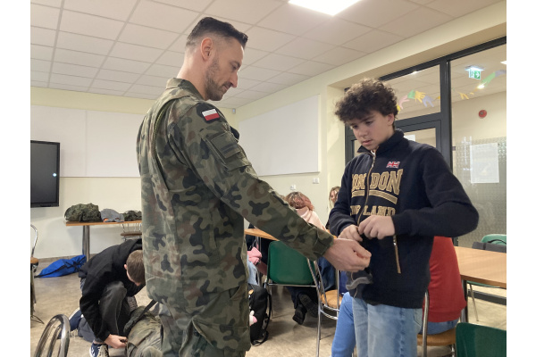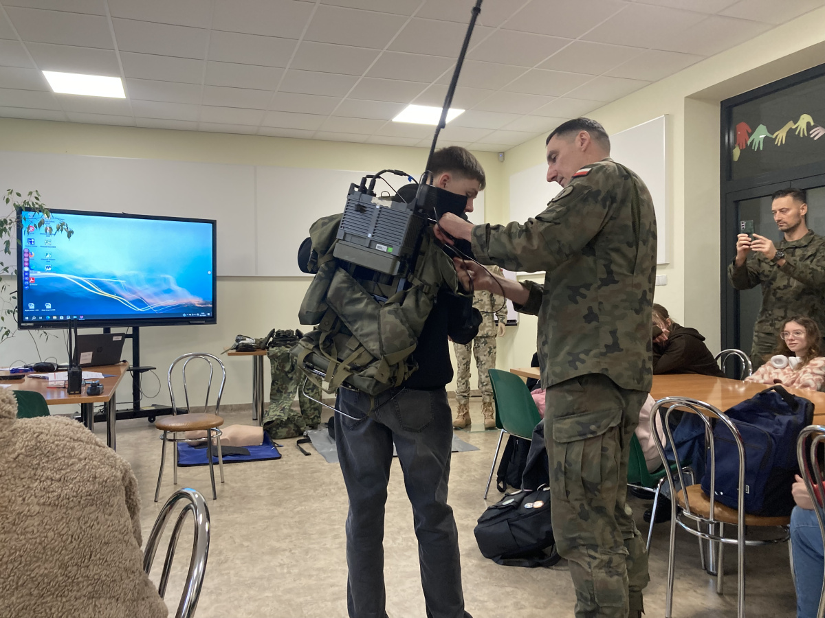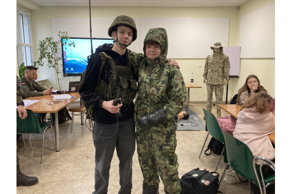 Podczas zajęć projektu „Edukacja z wojskiem” uczniowie zapoznali się m.in. z zasadami alarmowania, sposobami wzywania pomocy, podstawami ewakuacji i odnajdowania schronienia, technikami udzielania pierwszej pomocy, budowania odporności na zagrożenia informacyjne czy reagowania w sytuacji kontaktu z niezidentyfikowanymi obiektami. Wiemy jak wygląda plecak wojskowy i co powinien zawierać plecak ucieczkowy. Dowiedzieliśmy się też w jakich misjach brali udział żołnierze WP oraz ile takie misje trwają. Mieliśmy też okazję spotkania z weteranem misji poza granicami państwa, który udostępnił nam zbiór ciekawych zdjęć z kolekcji prywatnej.