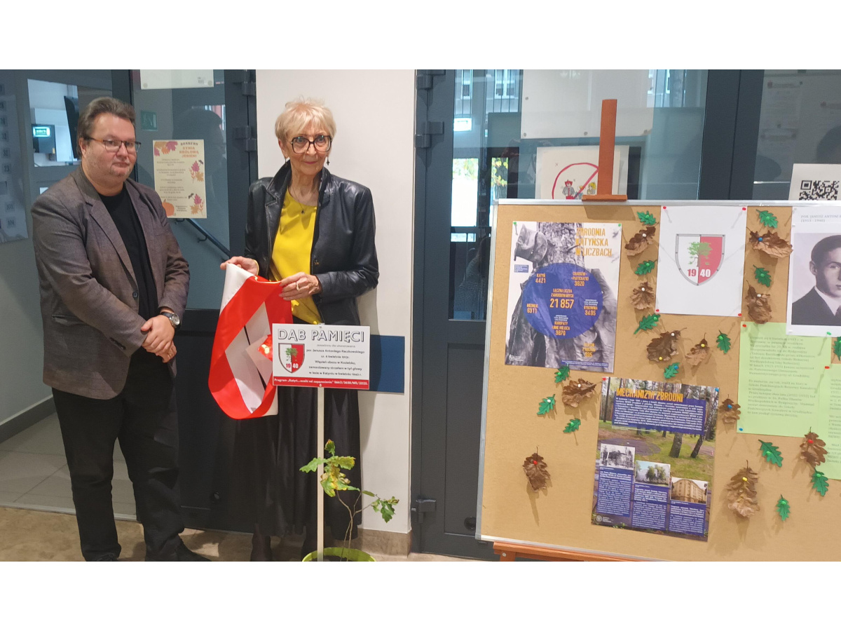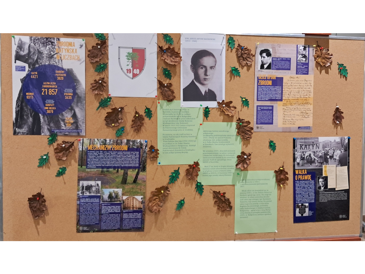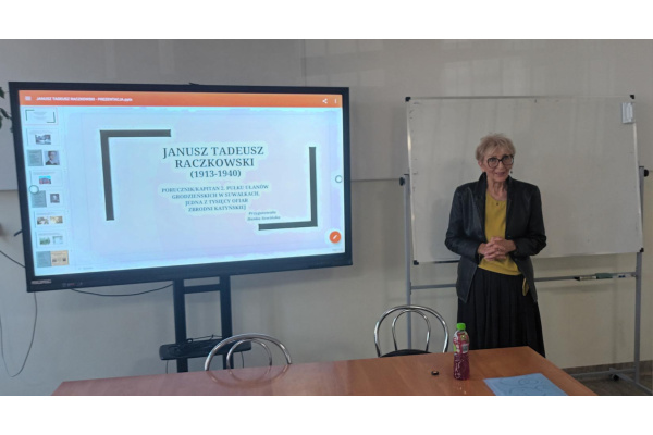 23 października mogliśmy wysłuchać wykładu na temat kłamstwa katyńskiego wygłoszonego przez Pana Wojciecha Bartoszka. Następnie Pani Hanka Sowińska przedstawiła losy Janusza Antoniego Raczkowskiego, któremu poświęcony jest nasz dąb. To była ważna lekcja historii dla naszej szkolnej społeczności.