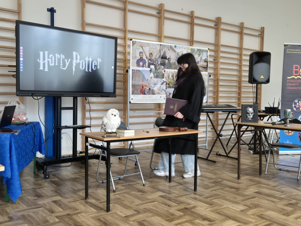 Podczas spotkania młodzież miała możliwość obejrzeć rozprawę sądową „Harry Potter kontra Severus Snape”.