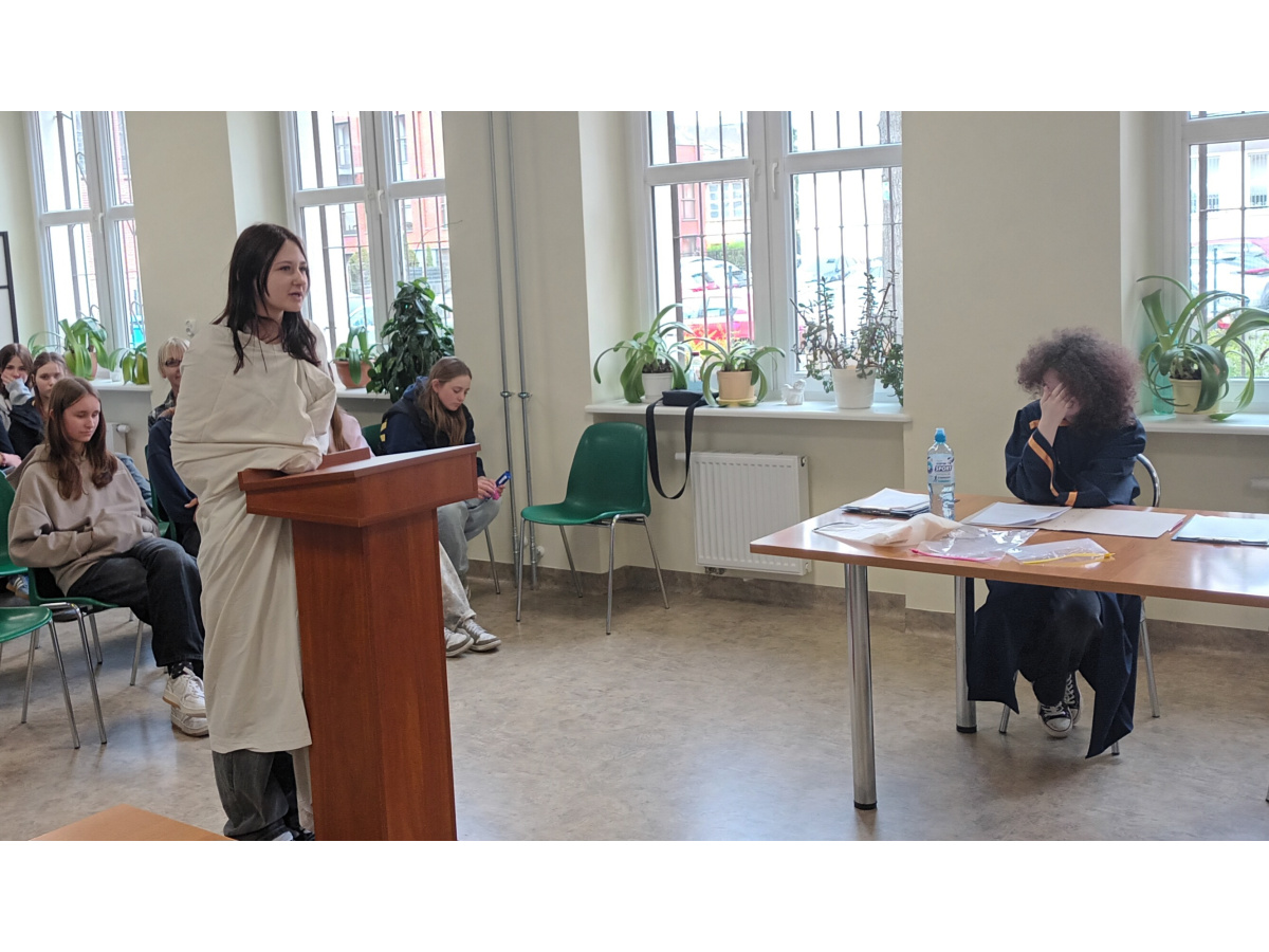 16 kwietnia naszą szkołę odwiedzili uczniowie klasy VIII ze Szkoły Podstawowej nr 2 w Bydgoszczy. Mieli oni możliwość udziału w procesie Balladyny, głównej bohaterki utworu Juliusza Słowackiego.