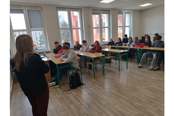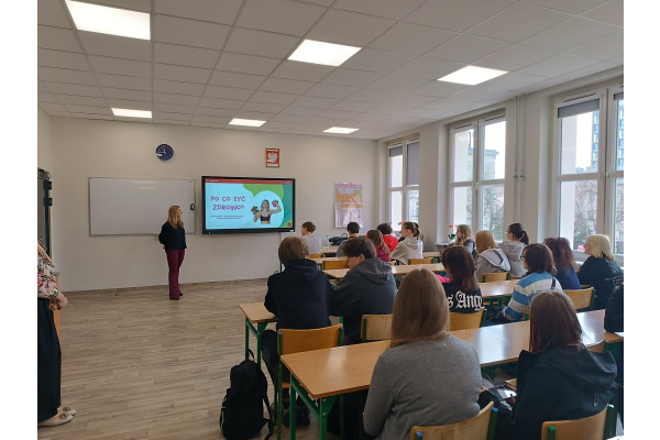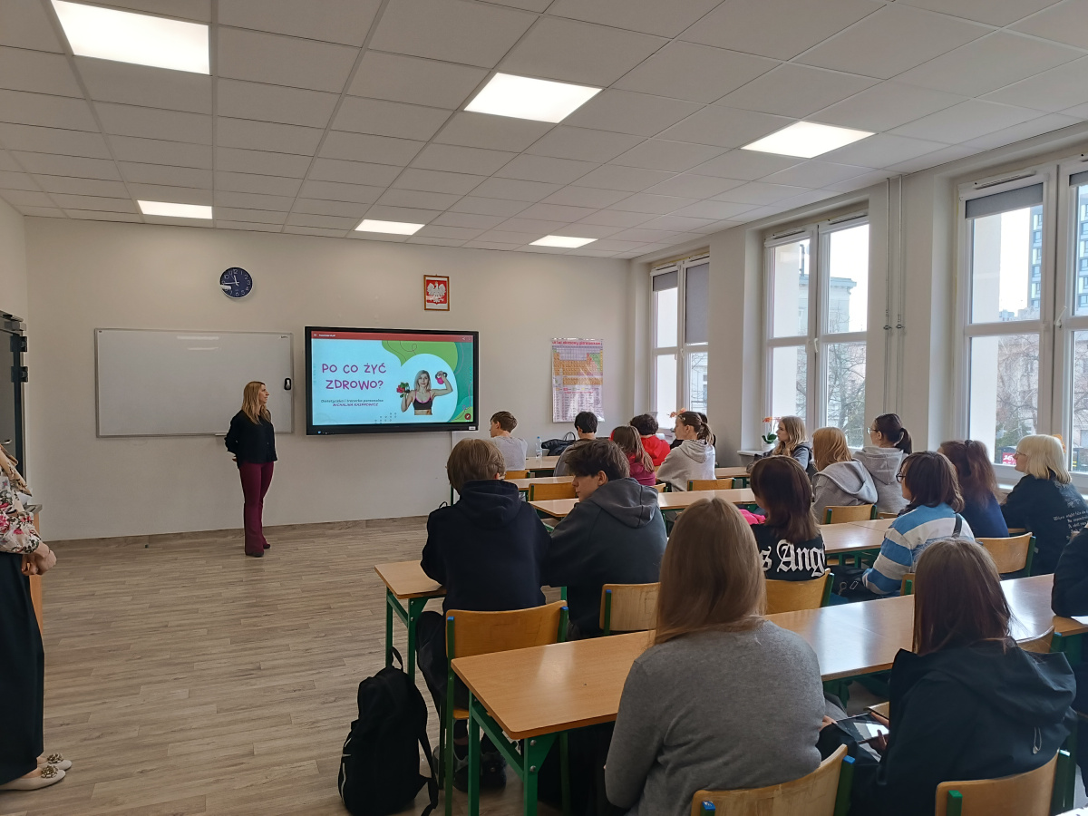 W dniu 13 kwietnia 2026 roku w XIII Liceum Ogólnokształcącym w Bydgoszczy odbyło się spotkanie uczniów klas trzecich z dietetykiem, panią Michaliną Kasprowicz. Wydarzenie zostało zorganizowane na zaproszenie pani Agnieszki Nalazek, pani Marty Kobieli-Malanowskiej oraz pani Żanety Piotrowskiej - Sas. Podczas spotkania uczniowie mieli okazję poszerzyć swoją wiedzę na temat zasad zdrowego odżywiania, roli składników odżywczych w codziennej diecie oraz wpływu nawyków żywieniowych na zdrowie i samopoczucie. Pani dietetyk podzieliła się również praktycznymi wskazówkami dotyczącymi komponowania zbilansowanych posiłków.